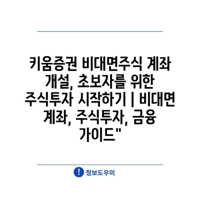 키움증권 비대면주식 계좌 개설, 초보자를 위한 주식투자 시작하기 | 비대면 계좌, 주식투자, 금융 가이드”