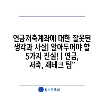 연금저축계좌에 대한 잘못된 생각과 사실| 알아두어야 할 5가지 진실! | 연금, 저축, 재테크 팁”