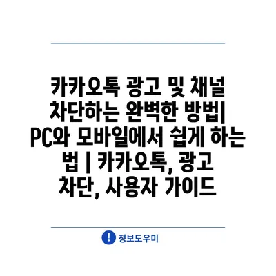 카카오톡 광고 및 채널 차단하는 완벽한 방법| PC와 모바일에서 쉽게 하는 법 | 카카오톡, 광고 차단, 사용자 가이드