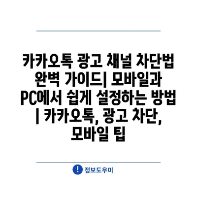 카카오톡 광고 채널 차단법 완벽 가이드| 모바일과 PC에서 쉽게 설정하는 방법 | 카카오톡, 광고 차단, 모바일 팁