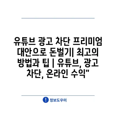 유튜브 광고 차단 프리미엄 대안으로 돈벌기| 최고의 방법과 팁 | 유튜브, 광고 차단, 온라인 수익”