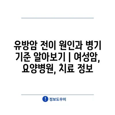 유방암 전이 원인과 병기 기준 알아보기 | 여성암, 요양병원, 치료 정보