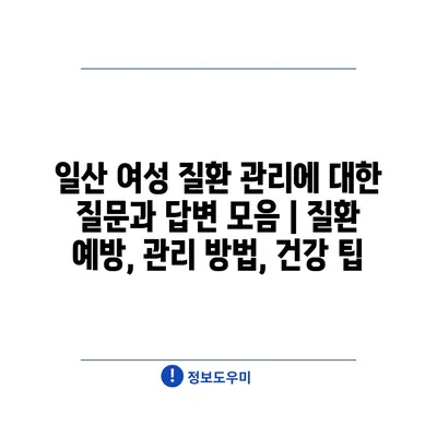 일산 여성 질환 관리에 대한 질문과 답변 모음 | 질환 예방, 관리 방법, 건강 팁