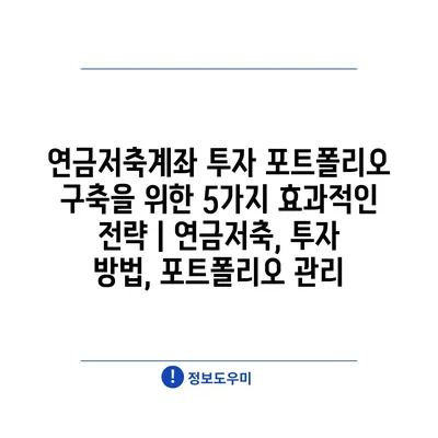 연금저축계좌 투자 포트폴리오 구축을 위한 5가지 효과적인 전략 | 연금저축, 투자 방법, 포트폴리오 관리