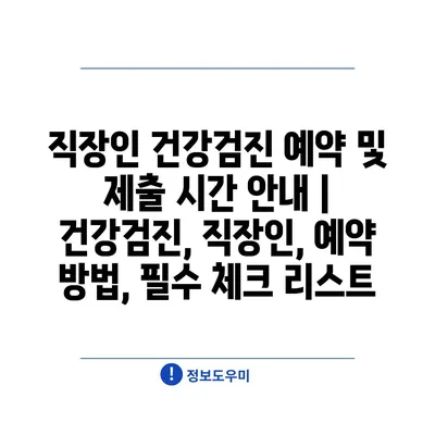 직장인 건강검진 예약 및 제출 시간 안내 | 건강검진, 직장인, 예약 방법, 필수 체크 리스트