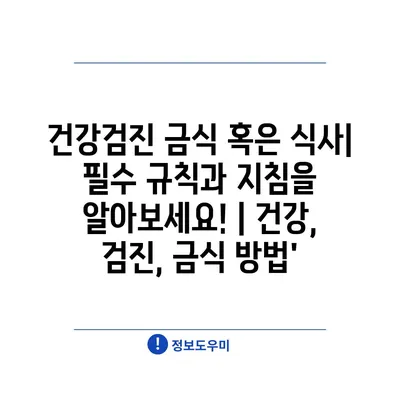 건강검진 금식 혹은 식사| 필수 규칙과 지침을 알아보세요! | 건강, 검진, 금식 방법’