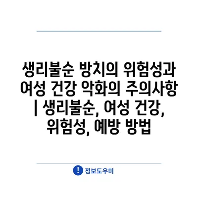 생리불순 방치의 위험성과 여성 건강 악화의 주의사항 | 생리불순, 여성 건강, 위험성, 예방 방법