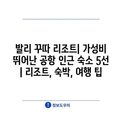 발리 꾸따 리조트| 가성비 뛰어난 공항 인근 숙소 5선 | 리조트, 숙박, 여행 팁
