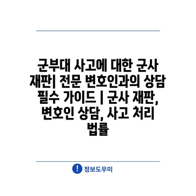 군부대 사고에 대한 군사 재판| 전문 변호인과의 상담 필수 가이드 | 군사 재판, 변호인 상담, 사고 처리 법률