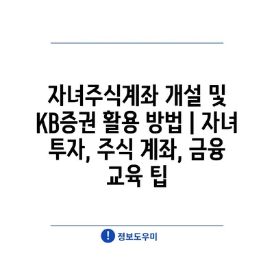 자녀주식계좌 개설 및 KB증권 활용 방법 | 자녀 투자, 주식 계좌, 금융 교육 팁