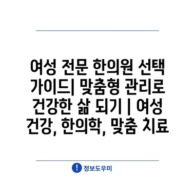 여성 전문 한의원 선택 가이드| 맞춤형 관리로 건강한 삶 되기 | 여성 건강, 한의학, 맞춤 치료