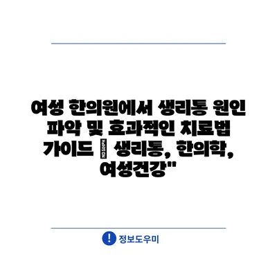 여성 한의원에서 생리통 원인 파악 및 효과적인 치료법 가이드 | 생리통, 한의학, 여성건강”