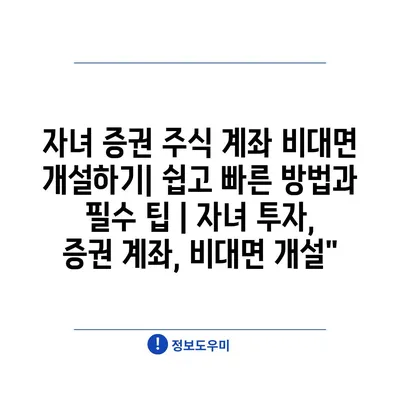 자녀 증권 주식 계좌 비대면 개설하기| 쉽고 빠른 방법과 필수 팁 | 자녀 투자, 증권 계좌, 비대면 개설”