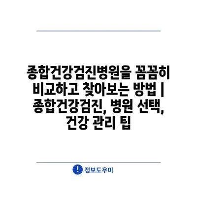 종합건강검진병원을 꼼꼼히 비교하고 찾아보는 방법 | 종합건강검진, 병원 선택, 건강 관리 팁