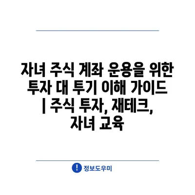 자녀 주식 계좌 운용을 위한 투자 대 투기 이해 가이드 | 주식 투자, 재테크, 자녀 교육