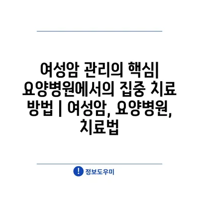 여성암 관리의 핵심| 요양병원에서의 집중 치료 방법 | 여성암, 요양병원, 치료법