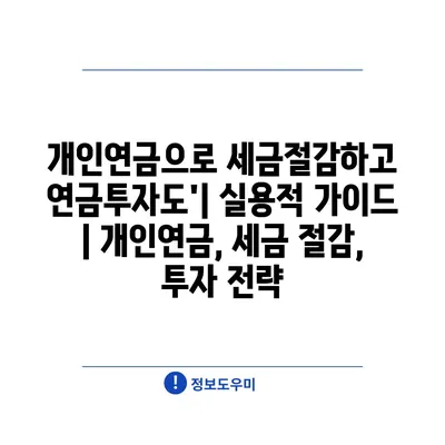 개인연금으로 세금절감하고 연금투자도’| 실용적 가이드 | 개인연금, 세금 절감, 투자 전략