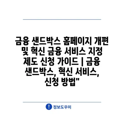 금융 샌드박스 홈페이지 개편 및 혁신 금융 서비스 지정 제도 신청 가이드 | 금융 샌드박스, 혁신 서비스, 신청 방법”