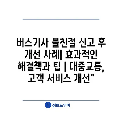 버스기사 불친절 신고 후 개선 사례| 효과적인 해결책과 팁 | 대중교통, 고객 서비스 개선”