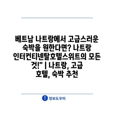 베트남 나트랑에서 고급스러운 숙박을 원한다면? 나트랑 인터컨티넨탈호텔스위트의 모든 것!” | 나트랑, 고급 호텔, 숙박 추천