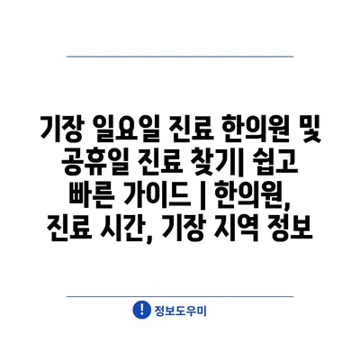 기장 일요일 진료 한의원 및 공휴일 진료 찾기| 쉽고 빠른 가이드 | 한의원, 진료 시간, 기장 지역 정보